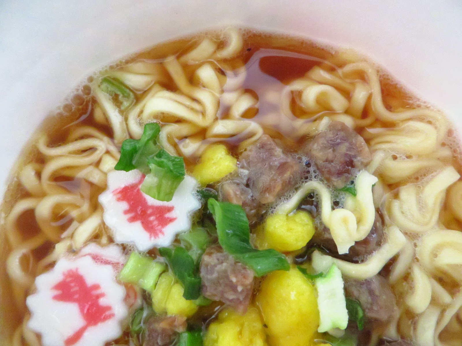 麺は標準的なカップ麺の麺って言う感じで、あんまり解説する事は有りません。一般的な美味しさです。