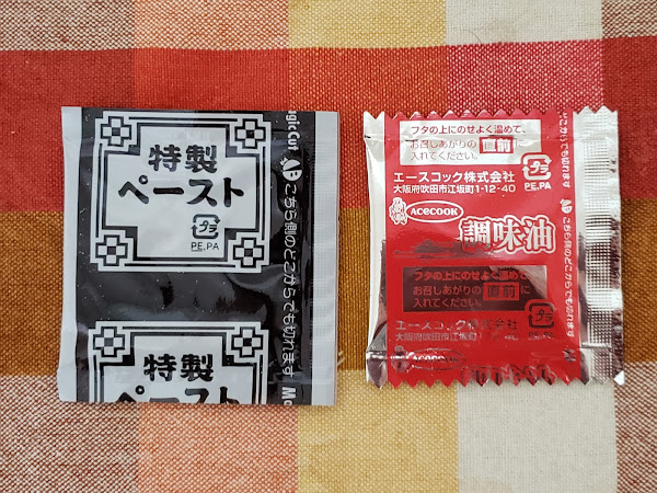乾燥具材は、キャベツ、にんにく、ねぎ、唐辛子、です。にんにくがあるようですが、ほとんど感じませんでした。食べる場所は選ばなくてよさそうです。