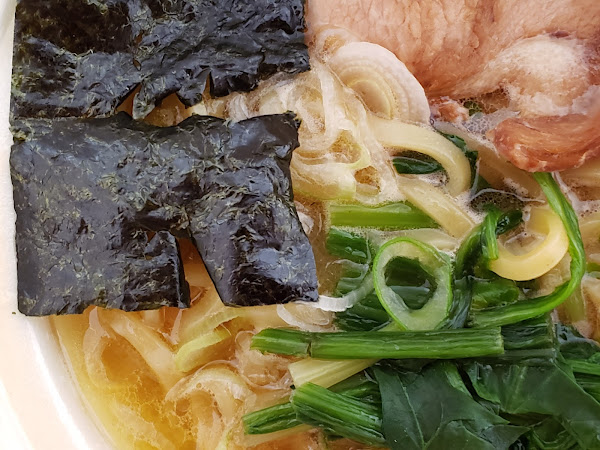 鶏ガラ・豚ガラ、更に昆布やホタテ等などの複雑な旨味がブレンドされたお醤油味は、コクが有って旨味も強いんですがくどくはなくて食べやすいお味に仕上がっておるんですが、脂加減が強めでそれなりに濃厚です。スパイスが付属されてないんですが、もしお手元に有ればテーブルコショーなどのホワイト系の胡椒を加えると更に美味しくなります。