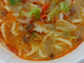 乾燥具材は、キャベツ、鶏・豚味付肉そぼろ、魚肉練り製品、もやし、人参、です。野菜の食感が良いですね、ちゃんぽんの雰囲気満載です。