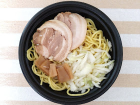麺はやや太めで角がしっかりと立った加水率低めで小麦感たっぷりな、少し太目で柔らかめに茹でた感じが再現された麺が使われておりました。決してヘタっている訳では無くて麺の美味しさがしっかりと感じられてとても素敵で、最近の近便のレンチン麺に肉薄するクオリティだと感じました。